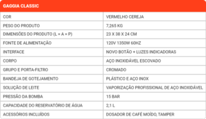 Seja o primeiro a avaliar “GAGGIA CLASSIC VERMELHA- Máquina de café expresso”